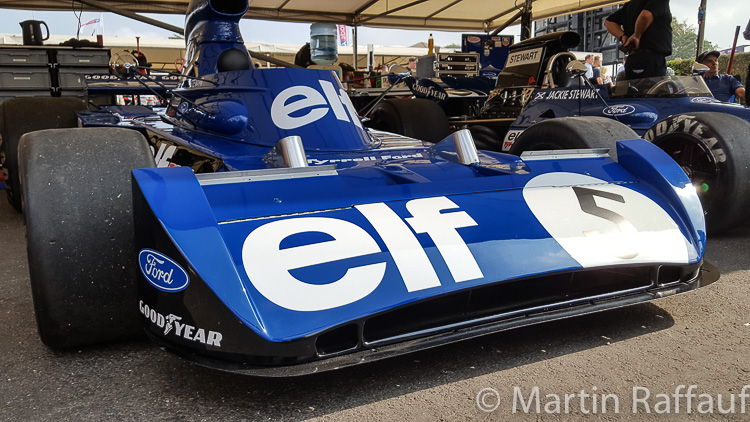 - Jackie and Paul Stewart driving two pristine Tyrrell Fords