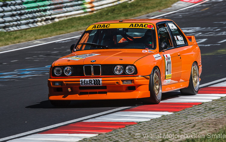 ADAC 24h-Classic, Nürburgring, 20-23 June 2019: There were many BMW E30 models on track, but this striking #411 BMW M3 E30 was driven by Michael Menden and Peter Posavac – Class 48, 2000 cc – 2500 cc, Group A+B, Division 10