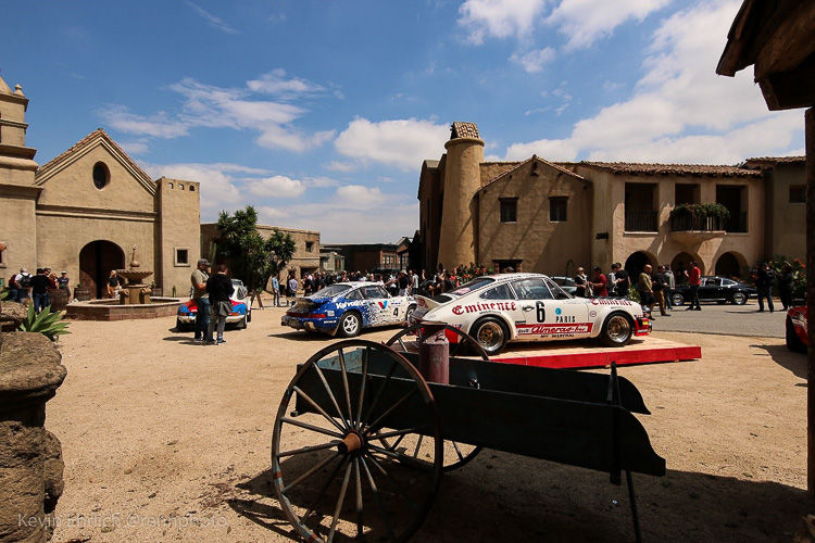 Western town led guests to Mexican town. Bruce Canepa’s white Porsche 935 straddled the border between the two. Adobe fronts, a water fountain, cactus and sandy terrain established the dusty environment suitable for safari and rally cars of various shapes and sizes. 911 versions with European rally, Baja desert, Pikes Peak, and safari configurations joined a 356 that could have run in the Carrera Panamericana to fill out the Porsche presence in Mexican town.