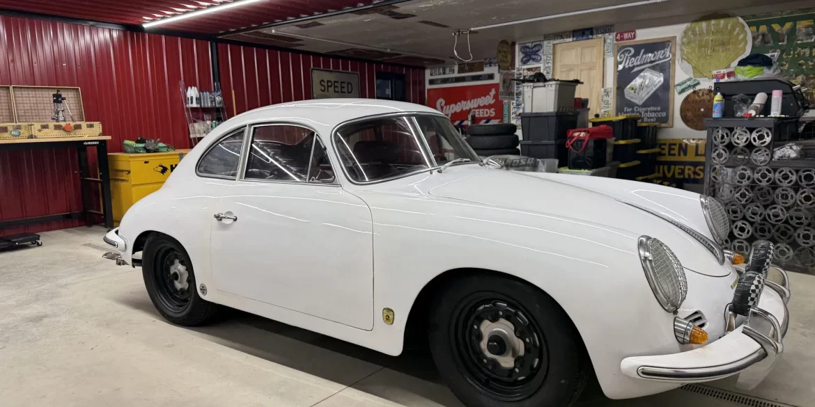 This 1960 Porsche 356B coupe is a Reutter-built T5 body finished in white over black leather and is powered by a replacement 1.6-liter flat-four paired with a four-speed manual transaxle. Equipment includes a sliding steel sunroof, 15″ vented steel wheels, lowered suspension, four-wheel drum brakes, body-color bumpers, removable headlight grilles,...