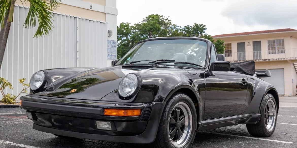 This 1988 Porsche 911 Turbo cabriolet was first registered in New Jersey and spent time in Canada before relocating to Florida following the seller’s purchase in 2023. Powered by a turbocharged 3.3-liter flat-six paired with a four-speed manual transaxle, the car is finished in black over black leather upholstery. Equipment...