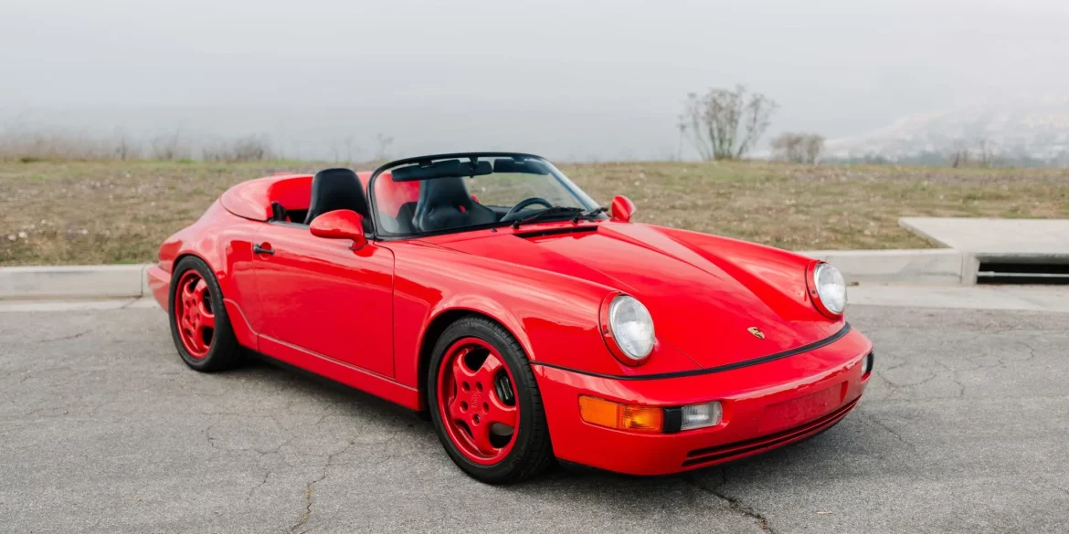 This 1994 Porsche 911 Speedster is one of 936 examples produced between 1992 and 1994, just 427 of which were built for the US market. It is powered by a 3.6-liter flat-six paired with a five-speed manual transaxle and is finished in Guards Red over black and gray leather upholstery....