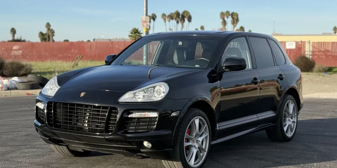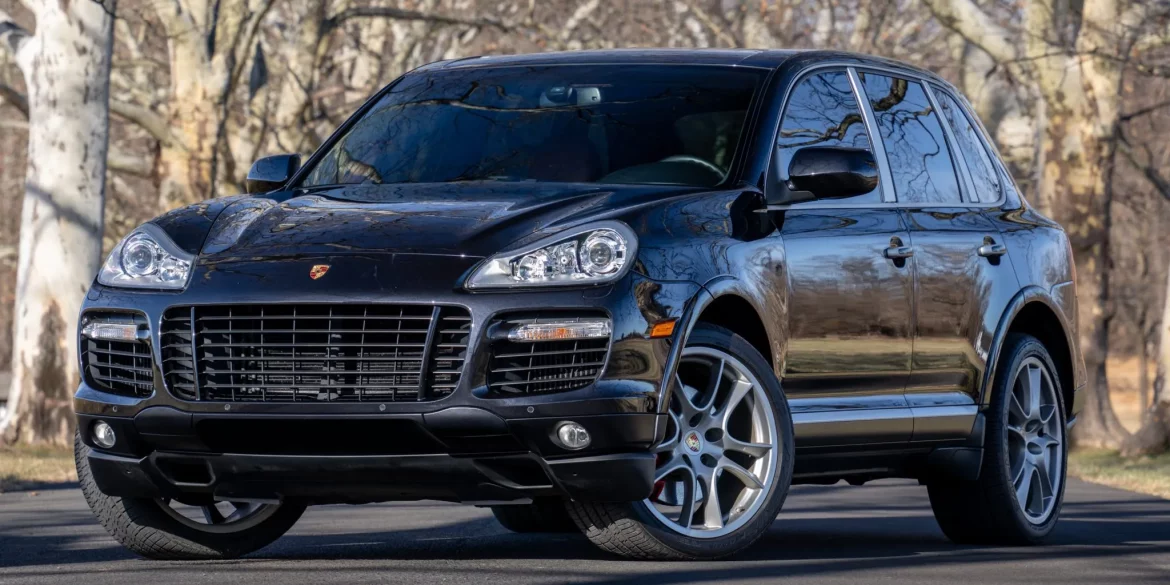 This 2008 Porsche Cayenne Turbo is finished in Basalt Black Metallic over Chestnut leather and is powered by a twin-turbocharged 4.8-liter V8 paired with a six-speed automatic transmission. Equipment includes a sunroof, bi-xenon headlights, Porsche Active Suspension Management, Porsche Dynamic Chassis Control, and 21″ Cayenne Sport wheels as well as...