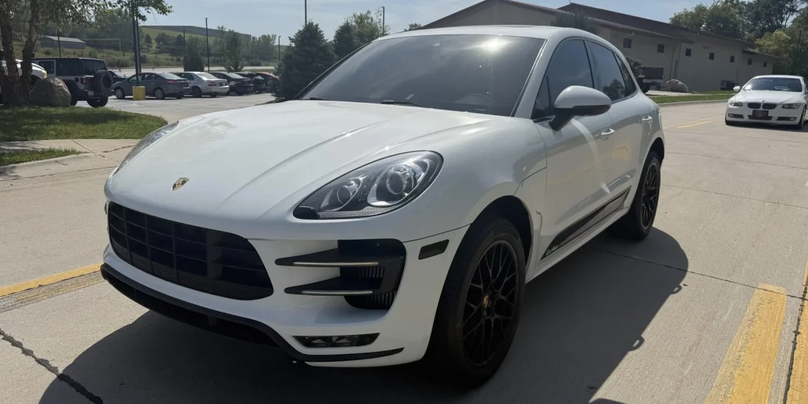 This 2016 Porsche Macan Turbo is finished in White over a Pebble Gray and Agate Gray interior and is powered by a twin-turbocharged 3.6-liter V6 that sends power to all four wheels through a seven-speed PDK transaxle and a PTV Plus differential. Equipment includes the Premium Plus, Carbon Fiber Interior,...