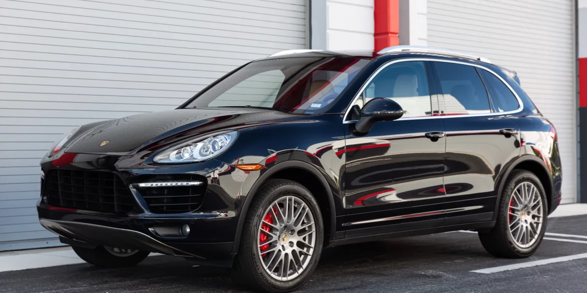 This 2011 Porsche Cayenne Turbo is finished in Jet Black Metallic over Cream and Umber leather and is equipped with the Walnut Interior Package, Porsche Rear Seat Entertainment, a panoramic sunroof, 20″ RS Spyder Design wheels, heated and ventilated front seats, and thermally and noise-insulated glass. The SUV remained registered...