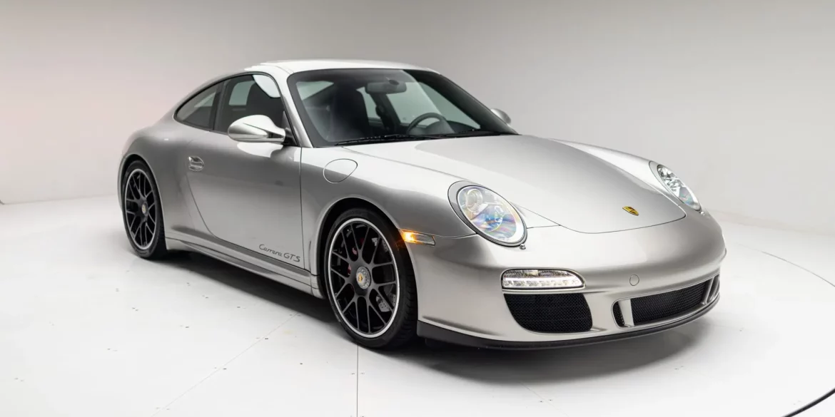 This 2011 Porsche 911 Carrera GTS coupe has 20k miles and is powered by a 3.8-liter flat-six linked with a six-speed manual transaxle and a limited-slip differential. The car is finished in Platinum Silver Metallic and was specified with a black leather interior, the Sport Chrono Package Plus, 19” RS...