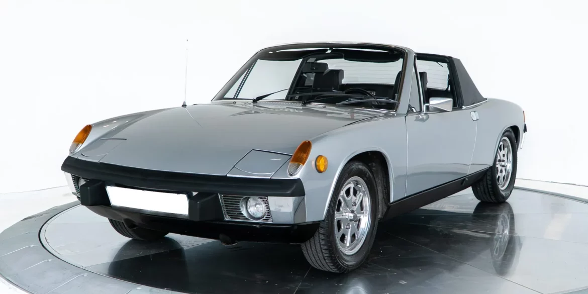 This 1973 Porsche 914 is finished in silver over black vinyl and is powered by a 1.7-liter flat-four paired with a five-speed manual transaxle. Equipment includes dual Weber carburetors, disc brakes, 15″ Fuchs alloy wheels, chrome bumpers, pop-up headlights, a removable Targa roof panel, a cabin heater, crank windows, and...