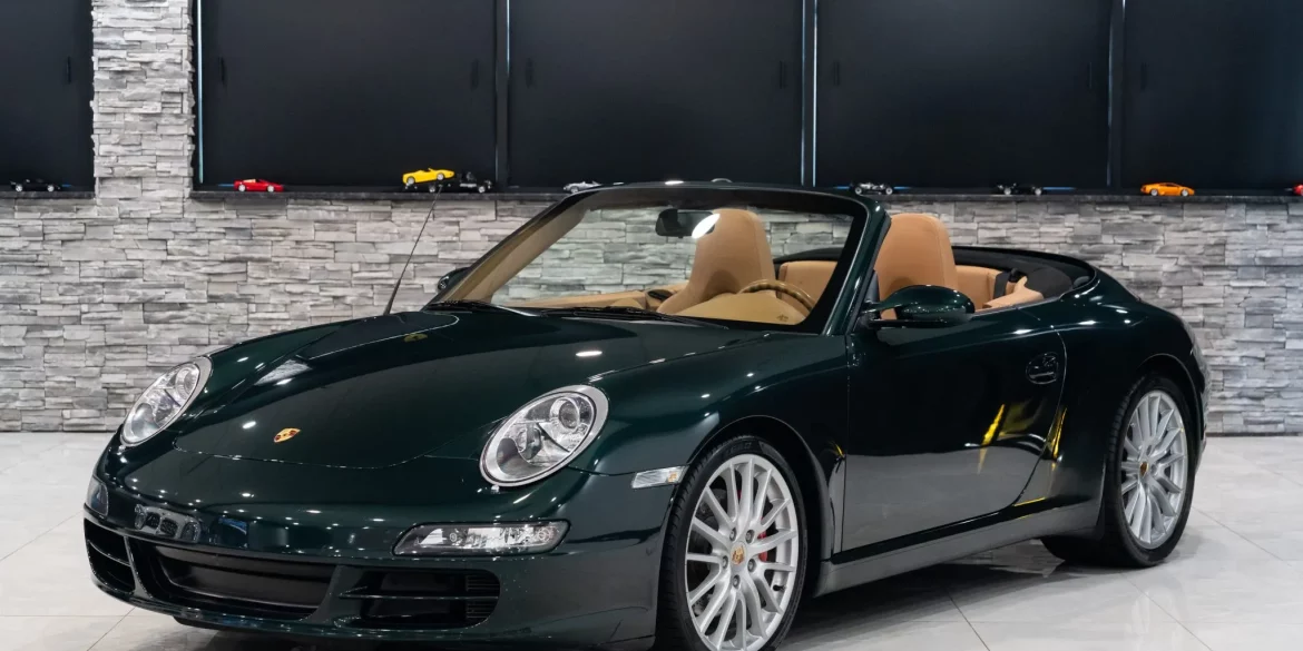 This 2006 Porsche 911 Carrera S cabriolet was initially delivered to Don Rosen Imports of Conshohocken, Pennsylvania, and it has 52k miles. It is finished in Forest Green Metallic over a Sand Beige leather interior and is powered by a 3.8-liter flat-six paired with a six-speed manual transaxle. Equipment includes...