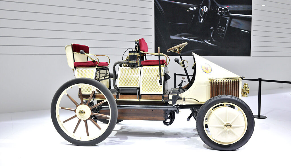 1900 Lohner-Porsche Hybrid With its future-oriented electric motors in the wheel hubs, the Lohner-Porsche was acknowledged as the absolute sensation at the Paris World Fair in 1900. On loan from the Technical Museum in Vienna, Austria, this outstanding achievement in technology protected today as a universal monument will be seen...
