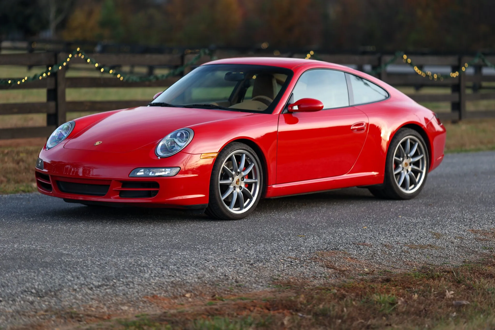 This 2007 Porsche 911 Carrera S coupe is finished in Guards Red over Sand Beige Full leather and has 53k miles following history in Texas.