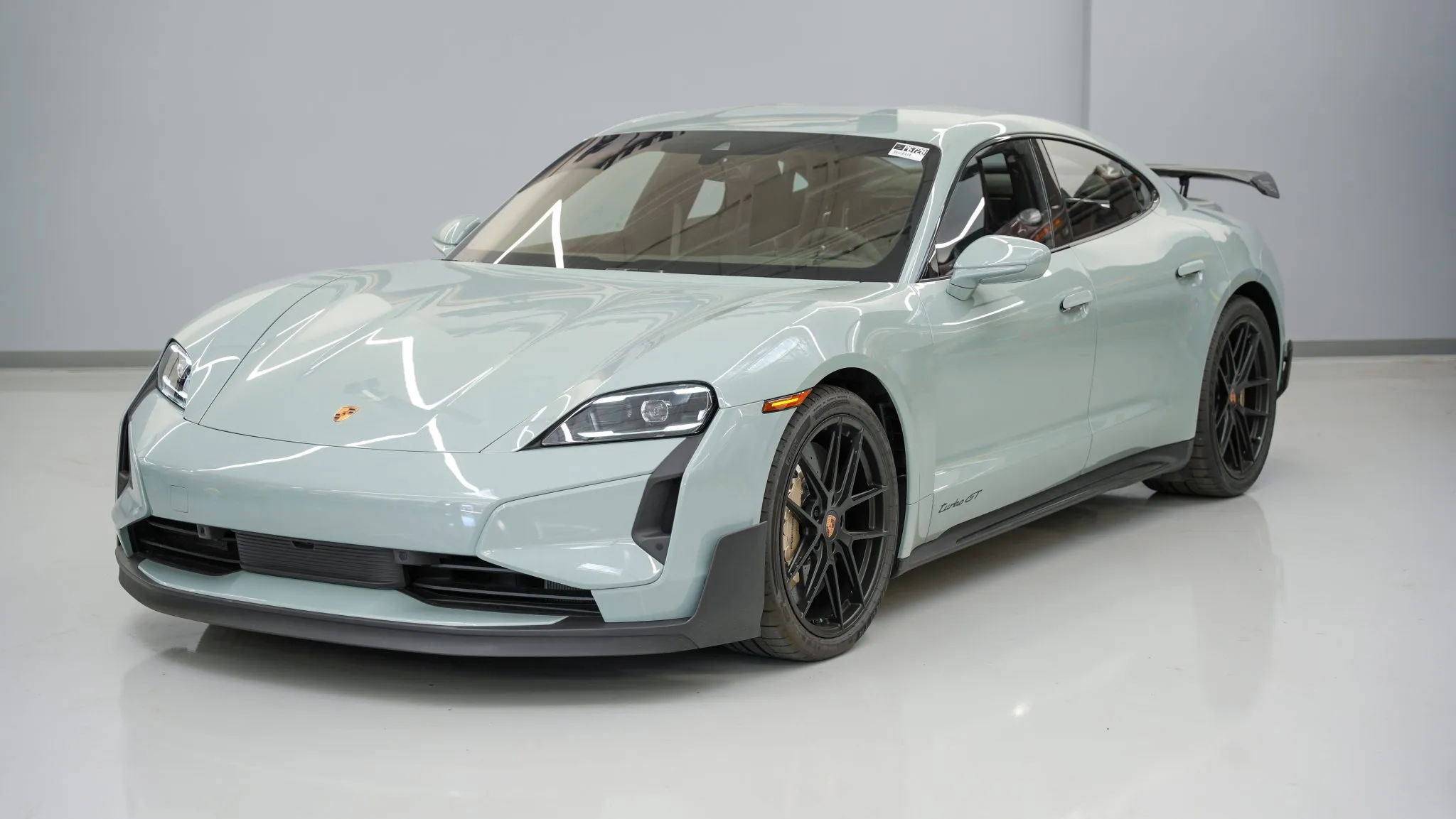 This Taycan Turbo GT Weissach has never been sold to a private owner and has 141 miles. It is now offered by the selling dealer in Las Vegas, Nevada, with a window sticker, a mobile charger, and a Manufacturer’s Certificate of Origin.