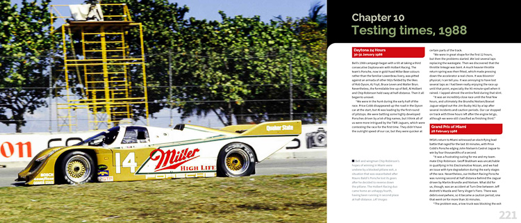 The author also details the races in which Bell participated with the Richard Lloyd Racing team, as well as the Gianpiero Moretti (MOMO) team, a thoroughly interesting period and often not well documented. Bell also gives a full account of what it was like driving alongside fellow heroes such as Stefan Bellof, Jo Siffert, Hans Stuck, Jacky Ickx and others.
