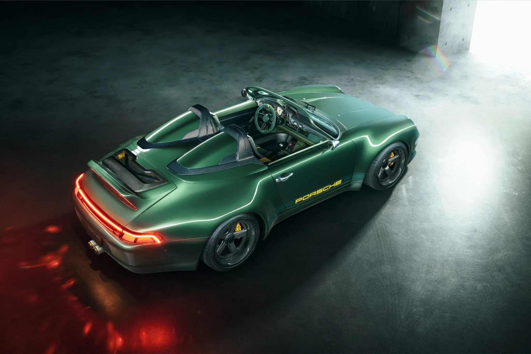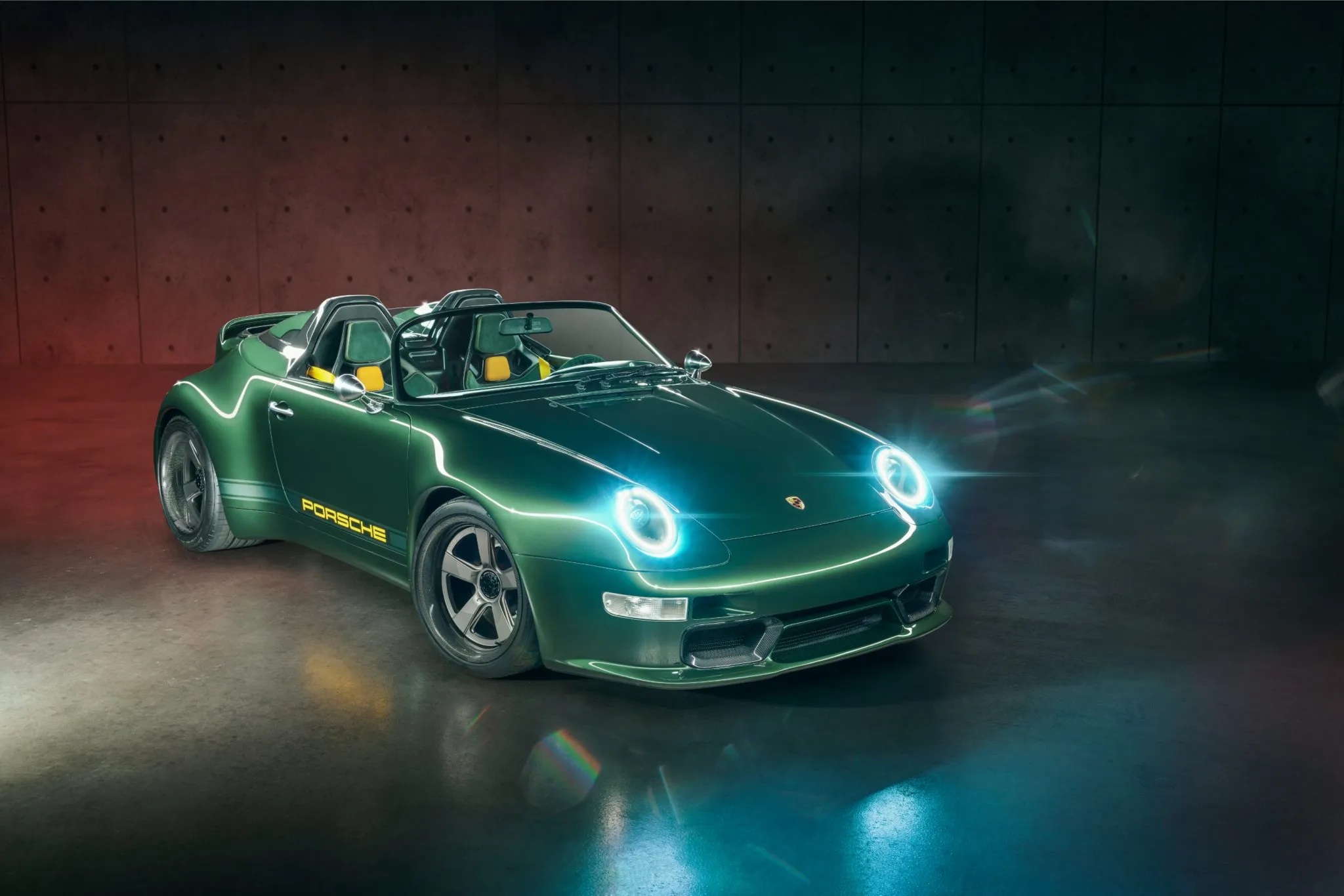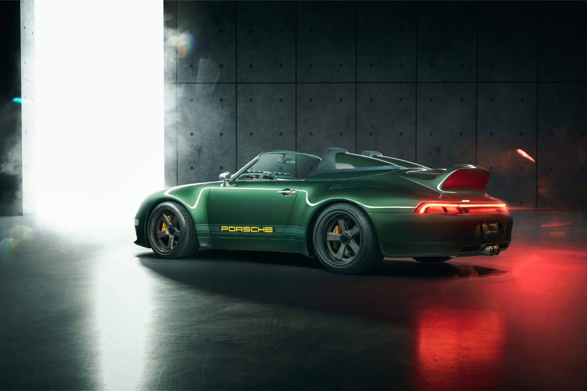 Based in Huntington Beach, California, Gunther Werks is known for transforming air-cooled Porsche 911s into what the brand’s 993 might resemble had its development continued into the modern era. Carbon fiber is extensively integrated into both the chassis and body structure, complemented by a tailored suspension system featuring DGR computer-controlled active coilovers, revised suspension geometry, stiffer anti-roll bars, lightweight uprights, and a hydraulic front-lift setup.