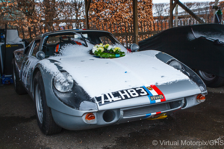 Goodwood 76th Members’ Meeting, 17/18 March 2018: #71 Porsche 904 Carrera GTS (1964) of Jason Barron leaves Parc Ferme after the Ronnie Hoare Trophy