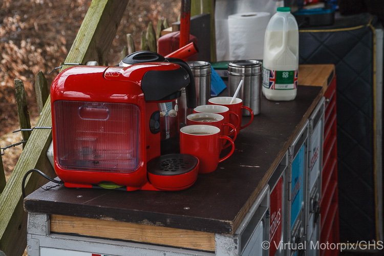 Goodwood 76th Members’ Meeting, 17/18 March 2018: One of the most important and well-used pieces of workshop equipment to be unpacked on the weekend and set up, was the coffee machine!