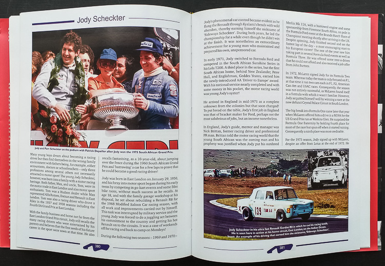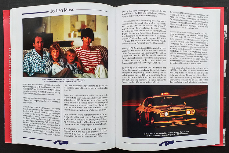 Loubser has written this hefty volume in a fine and easy to read style, and the quantity of images contained within its pages is impressive to say the least. In addition, the buyer will receive a CD of images and period film and video coverage making this a thoroughly enjoyable purchase. Apart from the racing history, the author has included ‘Memories’ by Jackie Stewart, Denny Hulme, Derek Bell, Rob Driver, Dave Clapham and Andrew Thompson. Then there are also informative profiles on twenty key players in the life and times of Kyalami, from race administration to world championship drivers.