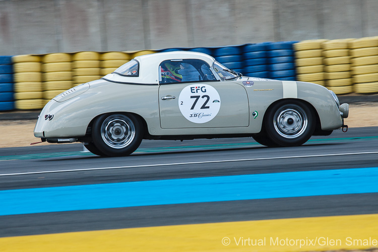 The earliest group of Porsche cars could be found in Grid 2, where the cars raced in period between the years 1949-1956. This is where the diminutive Porsche 356, by comparison with some entrants in this class, earned its competitive stripes in period. The top finishing Porsche in this class was the #30 Porsche 356 Pre-A (1954) which finished in 22nd place against the likes of the Maserati 250S, Jaguar C-type and D-type. Also competing in this class was the 1955 550 Spyder, the forerunner of Porsche’s future race car family.
