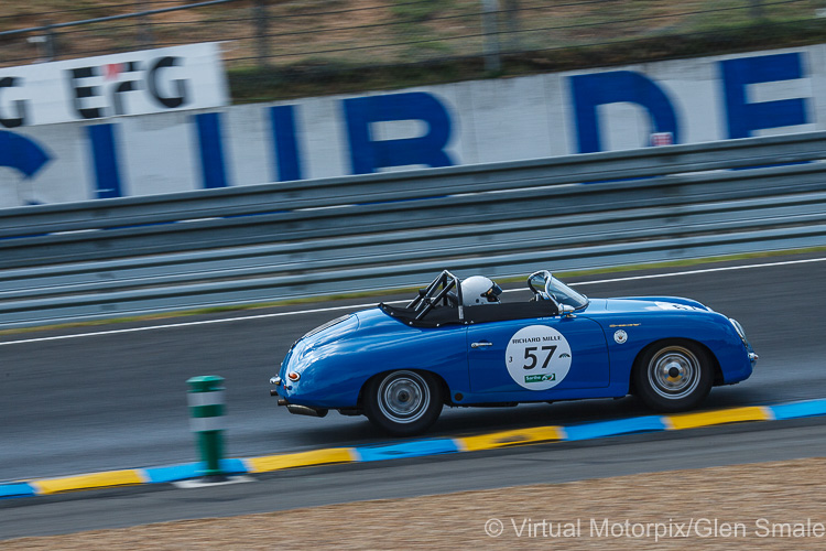 Grid 3 was for cars that competed at Le Mans between the years 1957-1961. This period was at the leading edge of one of the most innovative periods in recent motorsport development. Including such iconic race cars as the Ferrari 250 SWB, arguably one of the most beautiful race cars ever produced, the early 1960s saw great strides being made in lightweight construction and aerodynamics. Powered by a 1587cc 4-cylinder, double overhead cam boxer engine producing 160PS, the Porsche 718 RS60 replaced the earlier 550 model that had served the manufacturer so well. Nicknamed ‘giant killers’, the 550 and 718 race cars repeatedly threatened and even beat much more powerful machinery in its day thanks to Ferry Porsche’s philosophy of lightweight and nimble handling. Against a Lotus XV, Ferrari 250 GT Breadvan, Lister Jaguar, Austin Healey and Aston Martin, the #3 Porsche 718 RS60 came home in ninth place overall.