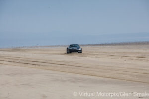 It was when speaking to Zef after his first run, he mentioned casually, that just after he had cleared the measured mile, he tapped off but felt that he had tapped off too quickly, as the car had gone into a slide. As he was able to correct the slide, he thought nothing more of it. Afterwards he elaborated for me, “I went through the 1-mile trap at 210 mph and my immediate reaction was, ‘wow’ what a speed, I will obviously slow down now so I took my foot off the throttle. This lightened the load on the front tyres, and there is a very slight bend at the end of the 2-mile mark, which immediately made the car go into a four-wheel drift. That was very scary because that was the first time that it had happened, but I managed to counter steer and correct it, got it straightened up again and made it to the paddock, and I thought nothing more of it. My team came back to me and said, ‘Zef, did you have a little moment back there, we have just seen a 300 metre four-wheel drift in the sand.’ So I said, ‘Wow 300 metres, that is some drift!’ So they said, ‘Yes you did pretty well to catch that one!’ But remember at that speed, you are doing 330 feet per a second.”