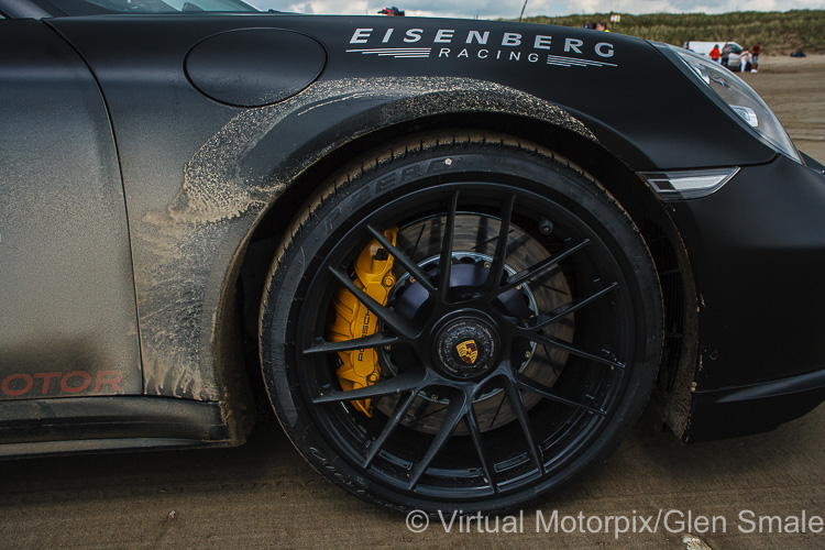 The gearbox was upgraded and a Dodson clutch was fitted, allowing 1000 lbs. of torque to be put through the PDK gearbox. The driveshafts were also upgraded and the car was fitted with BBS Superlight wheels to reduce unsprung mass. The tyre selection was an interesting one, as Zef explained, “The tyres that we have used on the beach are actually normal road Pirelli Zeros, the new ones, because they have got very good water channels and they disperse water quite well. The problem with 20-inch wheels is that there are a limited number of tyres available that are designed specifically for this kind of surface.”