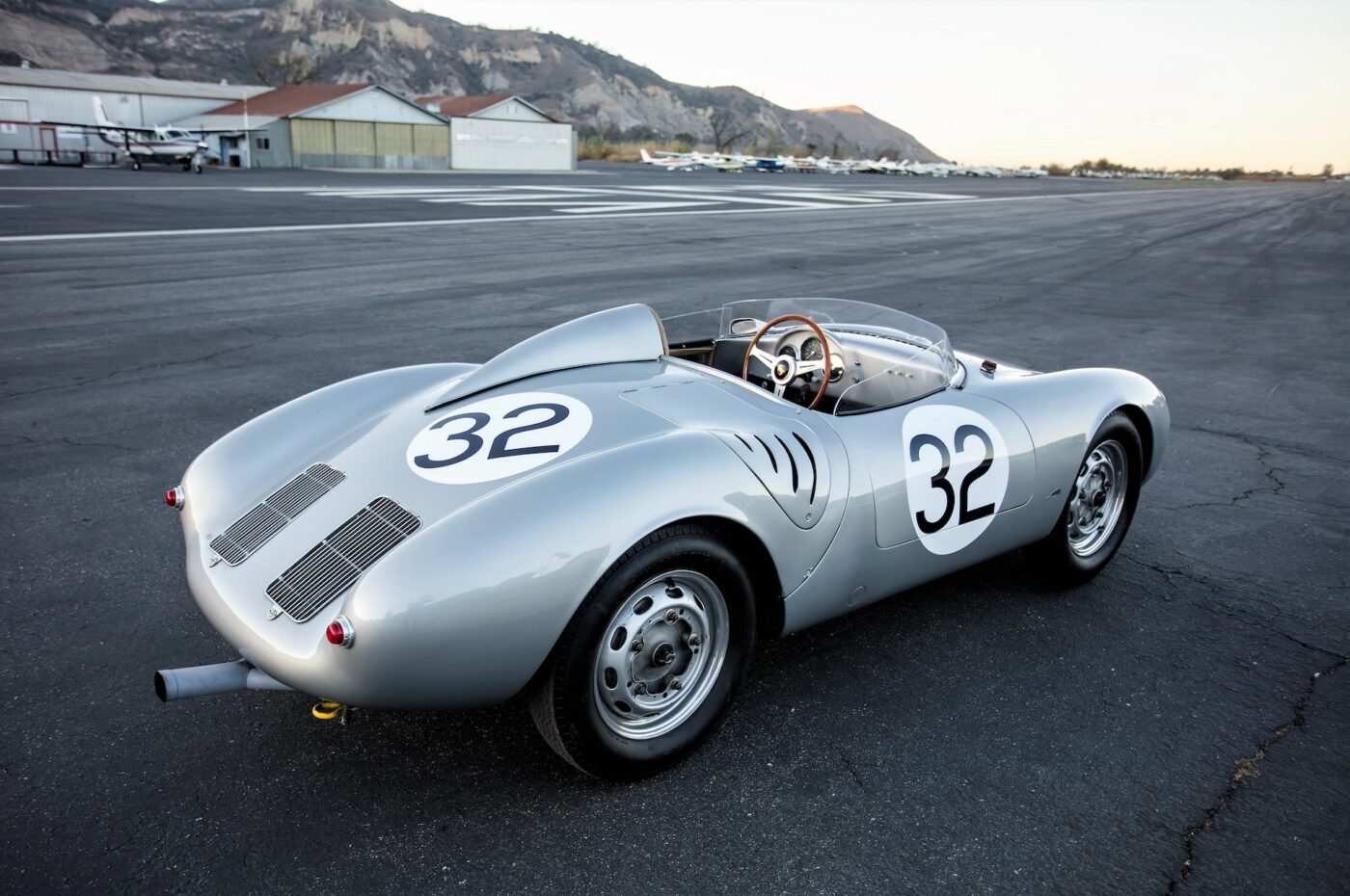 Appearing at the end of 1956, the 550A differed from its predecessor by use of a full tube spaceframe with several rear supportive cross-members, rather than the heavier welded-up sheet steel internal structure of the 550. Construction of the curvaceous and sleek hand-beaten aluminum alloy body shell was outsourced to Karosserie Wendler of Reutlingen. While visually similar to the 550, the 550A could be identified by new louvered access panels behind the doors. There were small air intake ducts in the nose. Most 550As offered a small molded windshield in front of the driver and a headrest fairing, and a metal tonneau cover closed off the passenger side of the spartan cockpit.