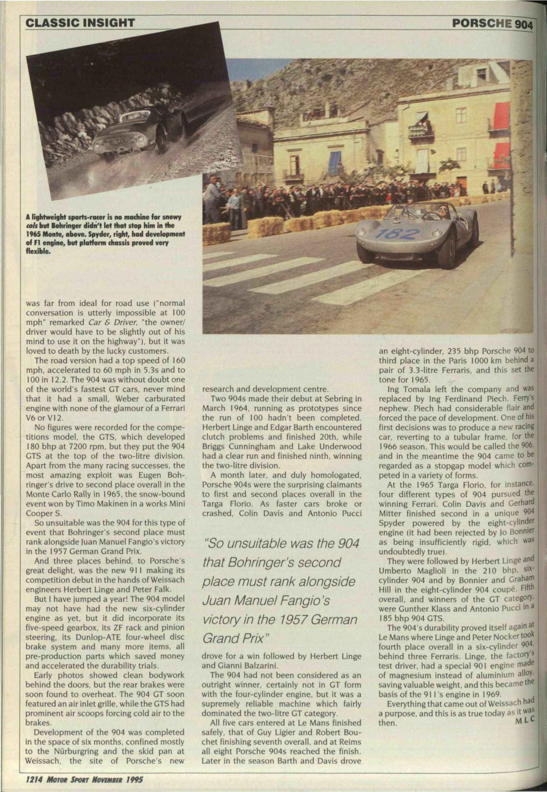 Porsche 904 GTS Prototype – A Versatile Competitor (By Motor Sport Magazine)