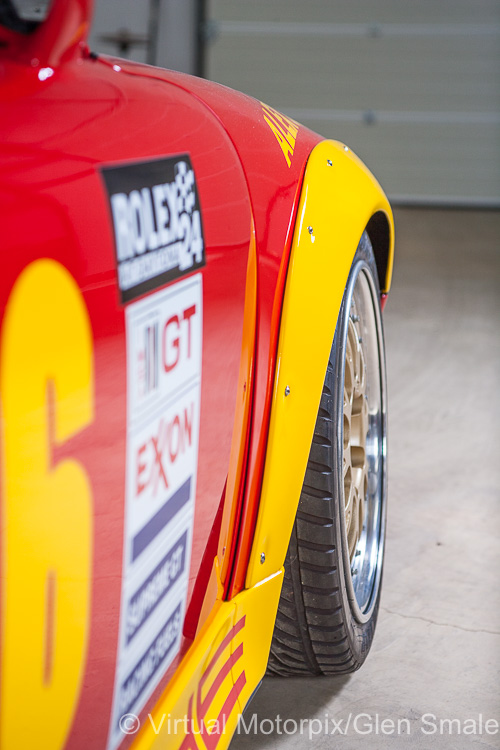 McLean pointed out that the wheels on the car are still the ones from its racing life in period, “You can see the Alex Job Racing logo spray-painted onto the inner barrels of the wheels. It is commonplace for teams to mark up their rims because at the track you might have twenty or thirty teams rocking up with tyre trolleys and dumping wheels for tyre fitting, and those wheels have got to go back to the right team. It is a nice indication that Alex Job’s marking is still on those rims, so they must be at least one of the sets of rims that the car raced on in ‘97 or ‘98.”