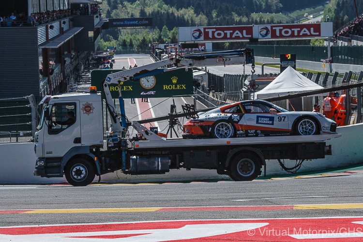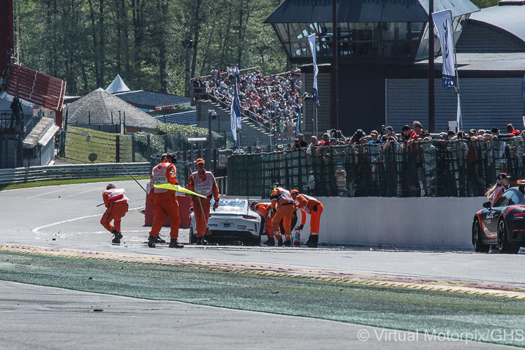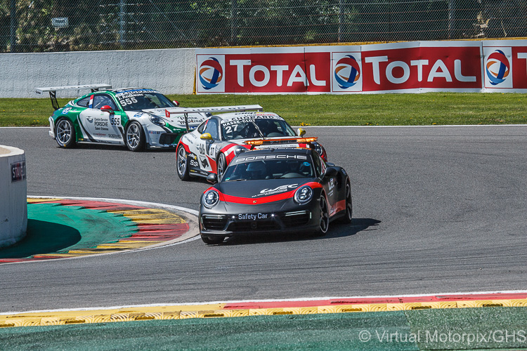 The eagerly anticipated second race of the weekend was unfortunately a very short one. Xavier Maasen (GT3 Cup Benelux) was the pole sitter but Valentin Hasse-Clot (Sébastien Loeb Racing) and Julien Andlauer both had a perfect start from the second row and led the field into the first corner. Big drama unfolded behind them, however, as Frenchman Jérémy Sarhy (Sébastien Loeb Racing) spun at the exit of La Source and trying to get back on the line touched two other competitors, causing a long safety car period to clean the track of debris and liquids. Two racers had to retire following this incident: Nicolas Saelens (Belgium Racing – GT3 Cup Benelux) and Alex Marchois (FAL Racing).