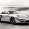 The next gem at the stand is a 911 Turbo 3.0 Coupé from 1975. This Porsche in Silver Green Diamond was one of the first 30 Turbos to be completed within series production. The mirrors matched those of the Carrera and were painted in the exterior color, while the wider wings were welded to the body by hand. Another crowd-puller at the over 500-square-metre stand is a 911 GT2 with wing extensions and additional air intakes.