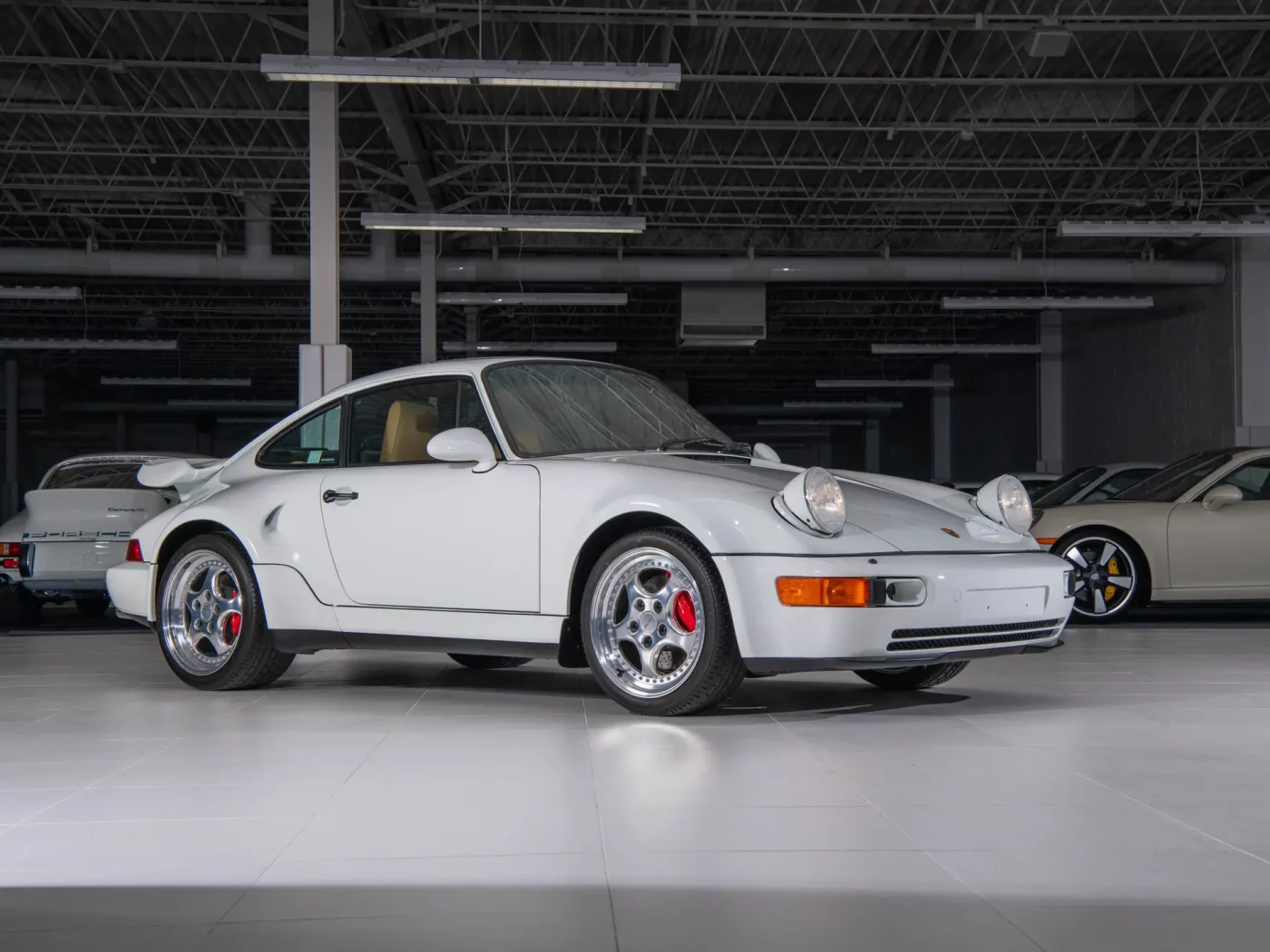 Race-derived wide body: Flared Turbo-style arches, massive brakes, and uprated suspension made it one of the most aggressive and capable road-legal 911s of its era.