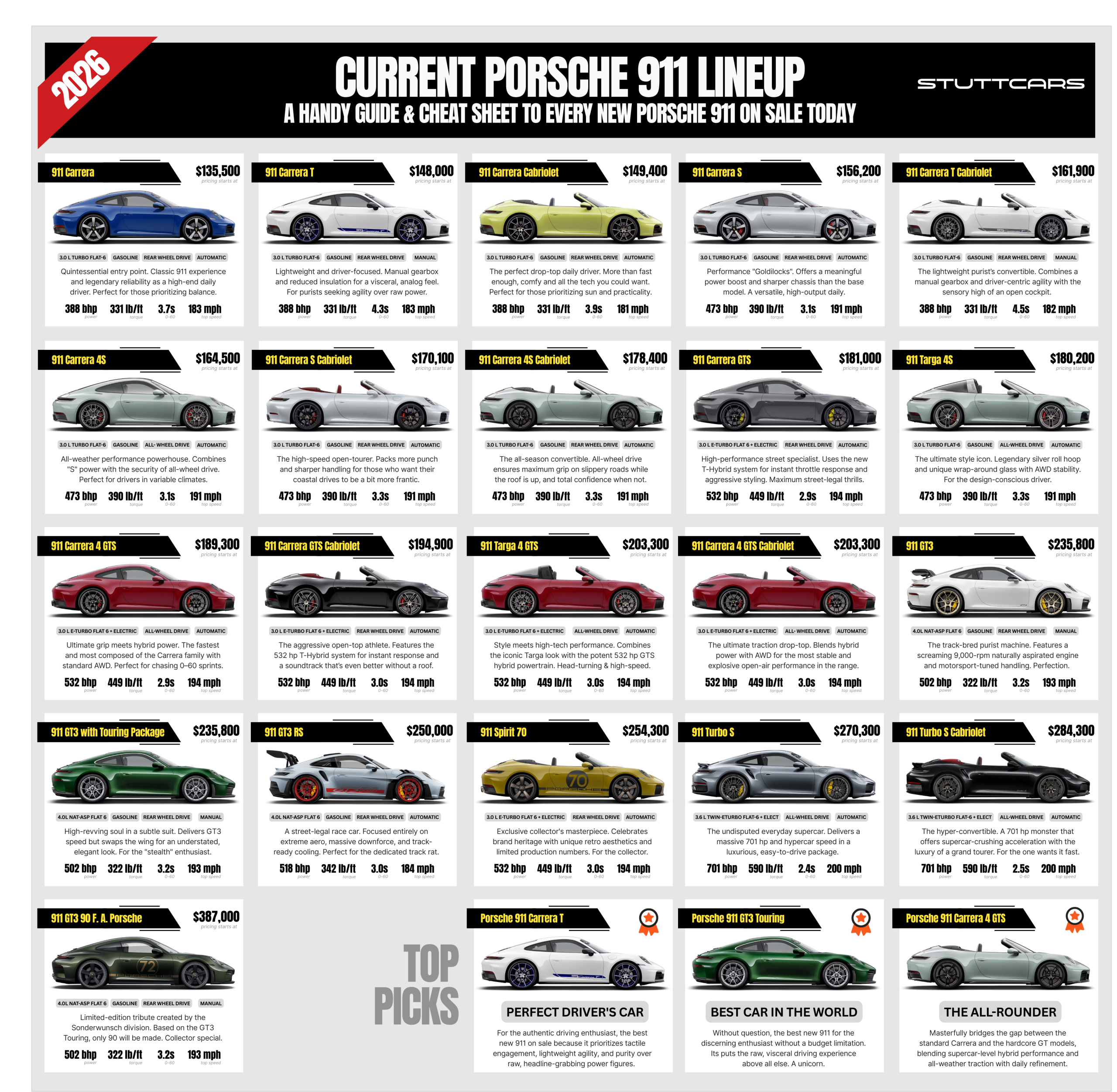 The 911 remains the definitive sports car” - whether you pick the hybrid-GTS “engineering nerd’s dream” or the more straightforward Carrera for “simple pleasures.”