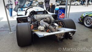 Jeroen Bleekemolen was on hand to drive the various Spyders and the Dauer 1994 Le Mans winning GT car. The Dauer GT (962-LM GT003) was the 962 GT that the factory used to circumvent the rules in 1994 when only GT cars were allowed. It won the race with Haywood, Dalmas and Baldi driving. It only ran one session at Rennsport but did well in the Concours, winning the racing category. As it happened, with high speed Le Mans body work, it was not well suited to the Laguna Seca circuit. Jeroen spent most of his time shuttling between the three RS Spyders: 9R6-704 (Muscle Milk car), 9R6-708 (Van Merkstein car) and 9R6-711 (Lista Office car), eventually settling on chassis #711 in which he finished second in the prototype race with the 962s. Gunnar Jeannette won the race in WeatherTech’s RS Spyder (Essex car), the two RS Spyders at the front basically lapped every 962 in the 25-minute race. Derek Bell remarked that it seemed strange that while driving a car in which he had won a lot of races, that he kept having to look in his mirrors for the RS Spyders that were coming up behind. The Laguna circuit certainly favours the Spyder over the 962.