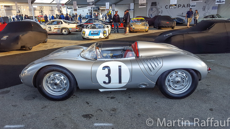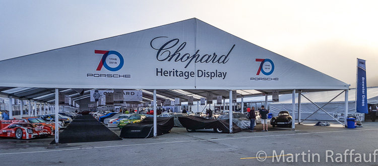 Porsche does a superb job in organising this event. As you can imagine, the logistics of arranging it are challenging with hundreds of cars showing up. Many are brought from the Stuttgart factory to California just for this event, but most are however brought by private owners. Some race in the race groups, while others just sat on display in the magnificent Chopard sponsored Heritage display. This display was in the centre of the paddock under a huge tent. Cars here were on display by invitation only and were selected to represent the defining cars over the 70-year life span of Porsche. They ranged from the 1938 Type 64 Berlin-Rome racer to the 1951 356SL Gmünd coupe all the way up to the 919 Hybrid. While none of these cars were raced, a few did some demonstration laps, including the Type 64 Berlin-Rome racer!