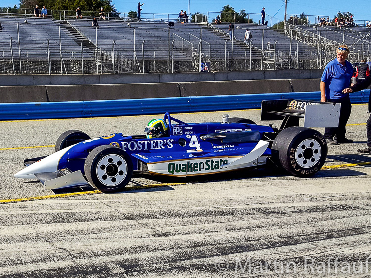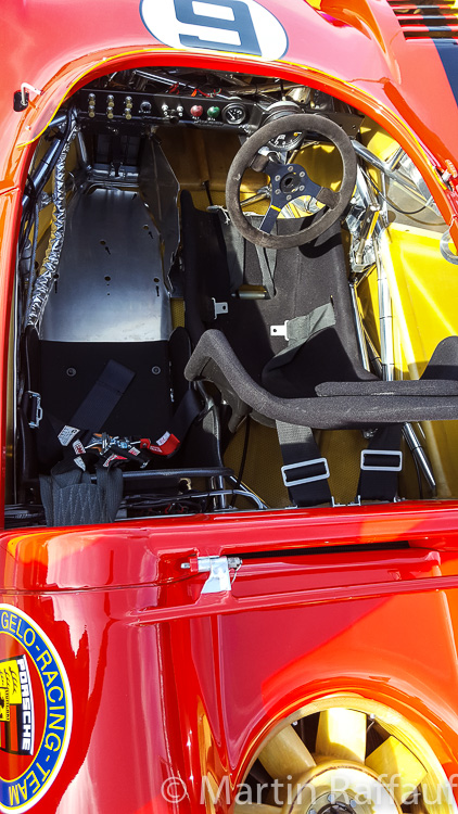 Jeroen Bleekemolen was on hand to drive the various Spyders and the Dauer 1994 Le Mans winning GT car. The Dauer GT (962-LM GT003) was the 962 GT that the factory used to circumvent the rules in 1994 when only GT cars were allowed. It won the race with Haywood, Dalmas and Baldi driving. It only ran one session at Rennsport but did well in the Concours, winning the racing category. As it happened, with high speed Le Mans body work, it was not well suited to the Laguna Seca circuit. Jeroen spent most of his time shuttling between the three RS Spyders: 9R6-704 (Muscle Milk car), 9R6-708 (Van Merkstein car) and 9R6-711 (Lista Office car), eventually settling on chassis #711 in which he finished second in the prototype race with the 962s. Gunnar Jeannette won the race in WeatherTech’s RS Spyder (Essex car), the two RS Spyders at the front basically lapped every 962 in the 25-minute race. Derek Bell remarked that it seemed strange that while driving a car in which he had won a lot of races, that he kept having to look in his mirrors for the RS Spyders that were coming up behind. The Laguna circuit certainly favours the Spyder over the 962.