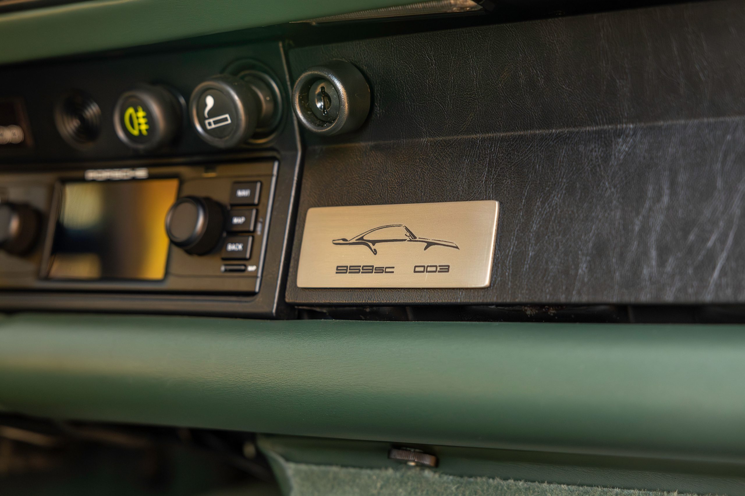 It features a unique color combination with a paint-to-sample Emerald Green exterior and Dark Green leather interior. At the heart of the 959 SC is a reworked 2.85-liter twin-turbocharged flat-six engine that now produces an astonishing 825 horsepower and 600 lb-ft of torque, almost doubling the original 444-hp output.