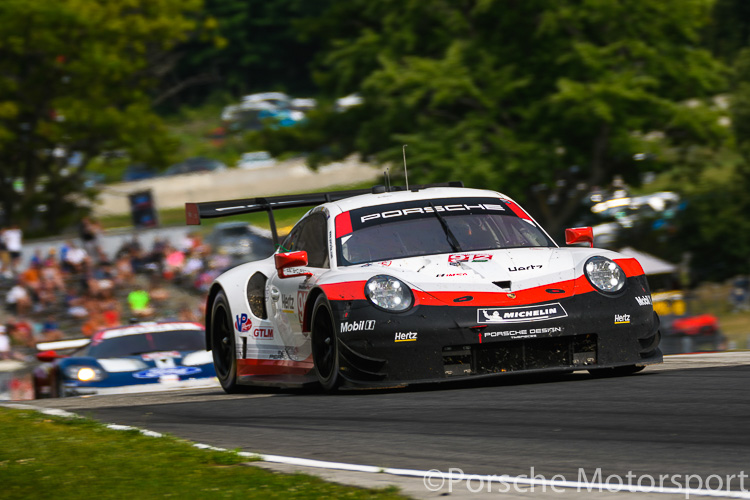 IMSA Road America, 5 August 2018: The factory #912 Porsche 911 RSR driven by Earl Bamber and Laurens Vanthoor IMSA Road America, 5 August 2018: The #58 Wright Motorsports Porsche 911 GT3 R driven by Patrick Long and Christina Nielsen