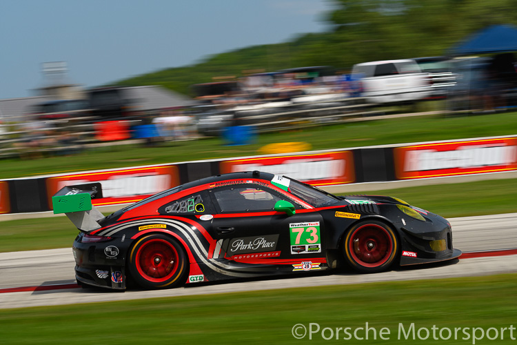 IMSA Road America, 5 August 2018: The #73 Park Place Motorsports Porsche 911 GT3 R driven by Jörg Bergmeister and Patrick Lindsey