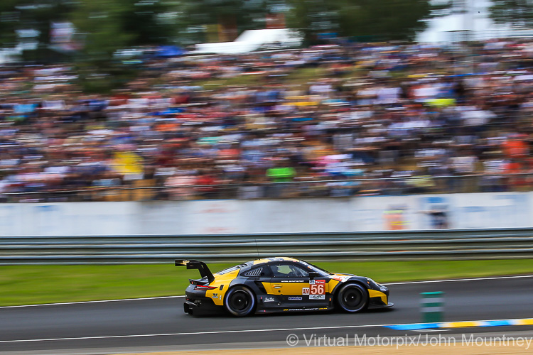The GTE Pro and Am Porsche 911 RSR are essentially running the same spec machine in both classes. The 911 RSR in the Pro class has a minimum weight limit of 1269 kg and the engine must run with a pair of 30.3 mm restrictors. In order to establish a performance difference between the Pro and Am Porsches, the 911 RSR in the Am class must have a minimum weight of 1279 kg and the engine must be fitted with a pair of 29.9 mm restrictors.