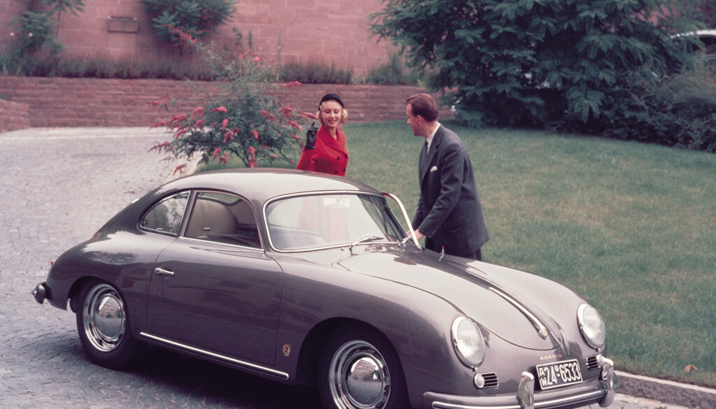 Despite looking outwardly similar to the preceding models, Porsche thoroughly updated their 356 line in 1956 and called their new model the 356A. At the core, this included a larger 1600 cc engine, but also a curved-glass windshield and a thoroughly revised suspension. At the 1955 Frankfurt Motor Show in September of 1955, Porsche released the 356A/1600 to the world with cabriolet, coupe and speedster bodies from Reutter. The 356A/1600 was a great performer, good for a sprint to 60 mph in 13.5 seconds and hit a top speed of 109 mph.