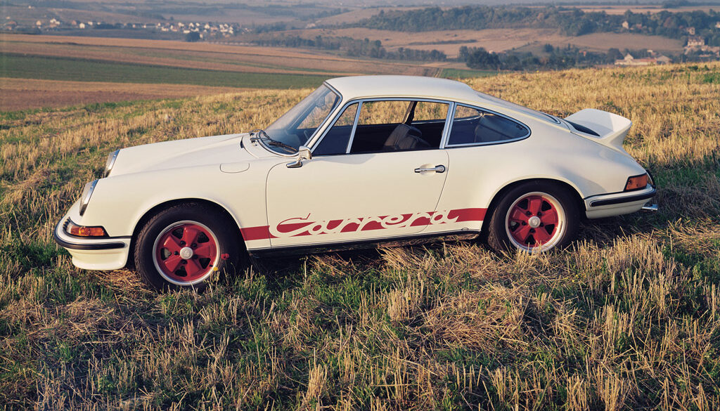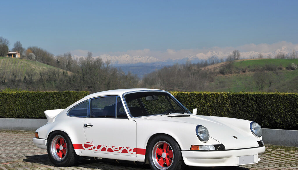 Revealed at the 1972 Paris Auto Show, the Carrera 2.7 RS was a special model used to homologate the 911 in Group 4 racing. Developed from the 911S, the 2.7 was more potent in almost every area. Compared to the standard Carrera, the 2.7 RS featured a larger engine, wider flares to accommodate the Fuchs alloy wheels, stiffened suspension, larger brakes and a ducktail rear spoiler. The Touring outsold the Lightweight, with a total of 1380 units built (the Lightweight had only 200 units).
