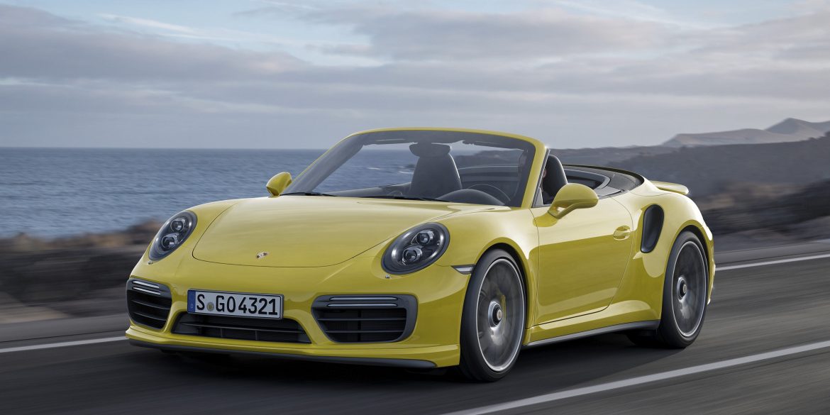 This is the fastest convertible GT you can buy. The Turbo S cab gets 572 bhp (39 hp more than the base turbo cab) and 553 ft lbs (9 ft lbs more than the regular cab) of torque. With the Turbo S, the PDCC Porsche Dynamic Chassis Control hydraulic roll bars came as standard. The PCCB Porsche Ceramic Composite Brakes had been standard on the Turbo S already since the 996 generation. New options included the radar-based lane change assist and a lift system for the front axle (increased ground clearance by 1.6″/40 mm). The PCM now had a multi-touch screen like in the facelifted 991 Carrera.
