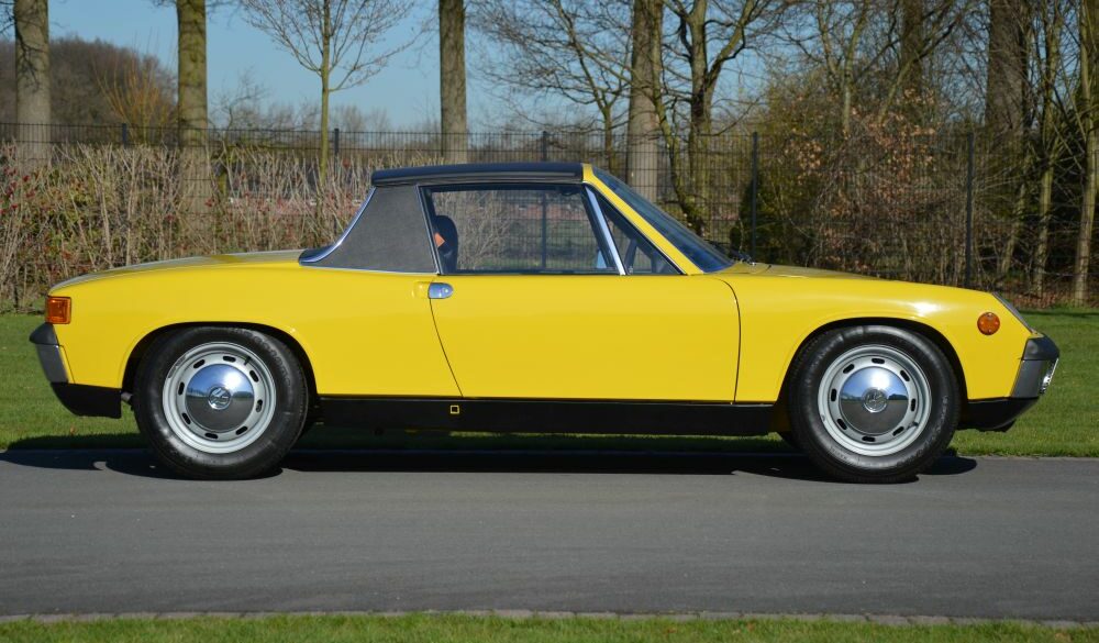 The Porsche 914 was first shown at the 1969 Frankfurt Auto Show was, as intended, a true conglomeration. The front suspension was largely derived from the 911 with some VW components, and the interior was a blend of both companies' parts bins. The initial engine offering was Volkswagen's 80-hp fuel-injected 1.7 liter flat four, while the 914/6 had a twin-carburetor 2.0-liter Porsche flat six tuned for 125 hp.