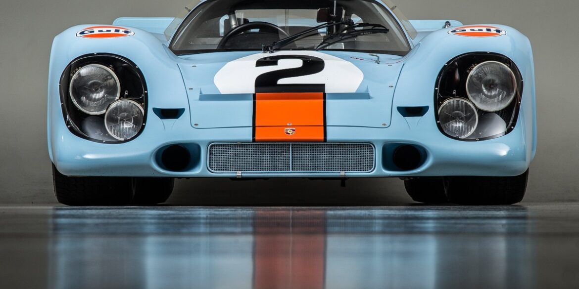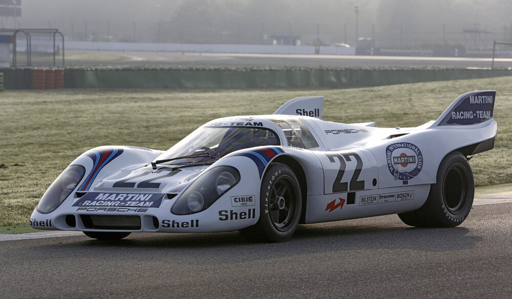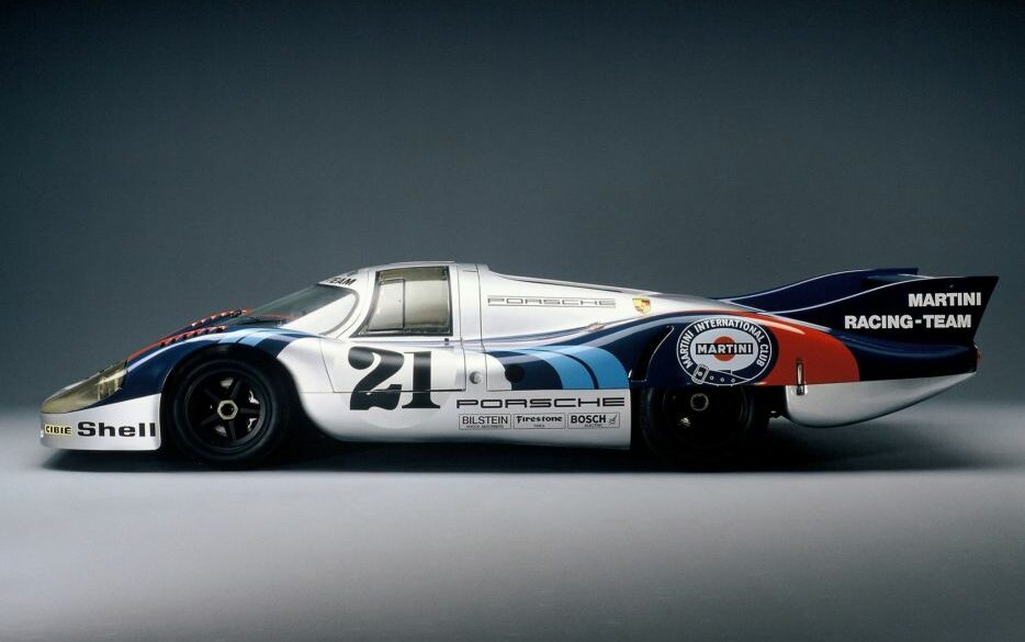 The “shark fins” on the tail gave the Porsche 917 KH 1971 greater directional stability and reduced wind resistance by 11 percent. In 1971 a veritable armada of six Porsche 917s started at Le Mans. The car with start number 22 was special. The white race car with the characteristic Martini stripes had the new “shark fins” on the tail that Porsche had first used in pretraining in April. This 917 was also the first Porsche with a magnesium tubular frame to be used in a race.