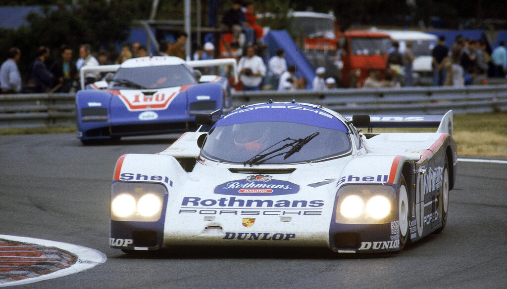 The Porsche 962 arrived on scene in 1984 as essentially a Porsche 956 for the IMSA/US market. A biturbo version was used in competition racing in Europe, while an IMSA version with a turbocharger featured in North America. The 962 C was based on the 956, with a 120 millimetre longer wheelbase and competed in LeMans. It differed from the IMSA version. The driver trio Stuck/Bell/Holbert was victorious at Le Mans in 1987. Porsche offered the 962 to privateers to race on their own and they were hugely successful.