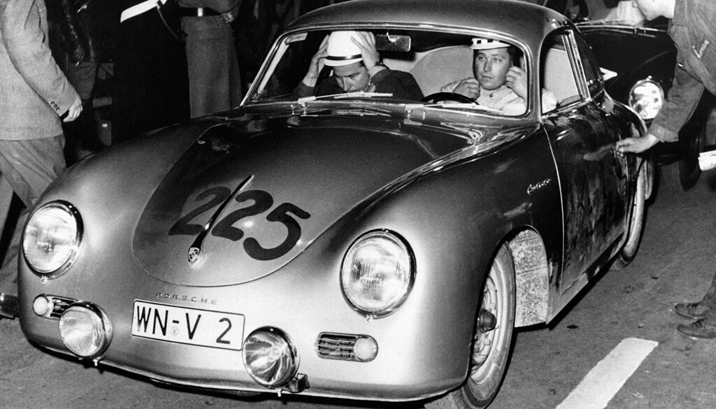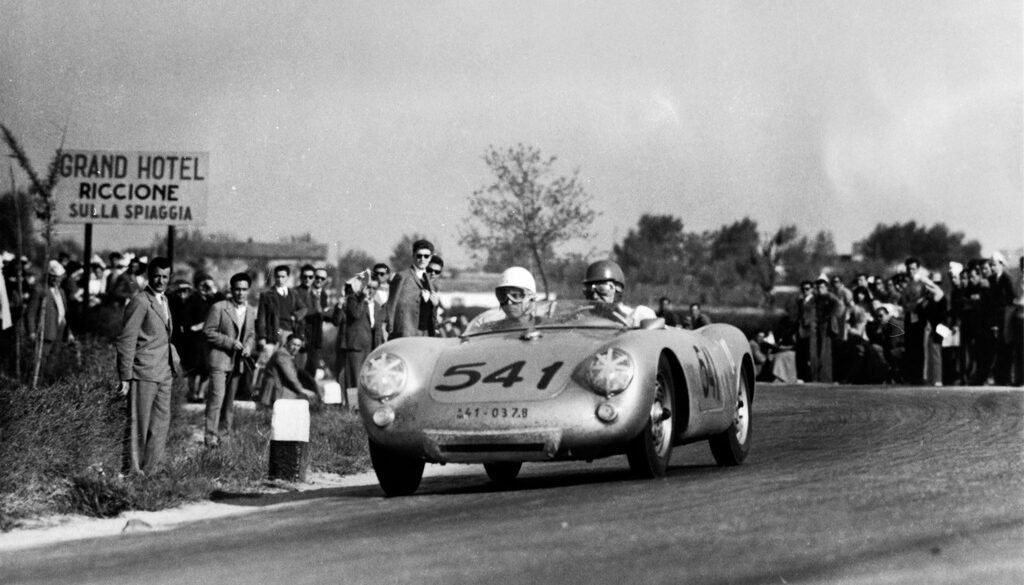 In 1953 Porsche created a series of 550 prototypes and 550-03 became the most important car in Porsche history by winning the 1954 Carrera Panamerica with Hans Herrmann at the wheel. This singular victory lent the Carrera nameplate to future models and also marked the first international victory of a mid-engine car. Only 15 prototypes were made until regular production began in 1954 of the Porsche RS Spyder.
