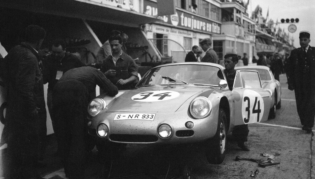 The Porsche 904 debuted late in 1963, for the 1964 racing season. Porsche designed the 1965 Porsche 904 Carrera GTS variant to compete in the FIA-GT class at various international racing events and a street-legal version debuted in 1964 in order to comply with FIA’s Group 3 homologation regulations. When the 904 Carrera GTS debuted, it represented Porsche’s first foray into fiberglass bodywork and the last hurrah for its four-cam, four-cylinder engine.