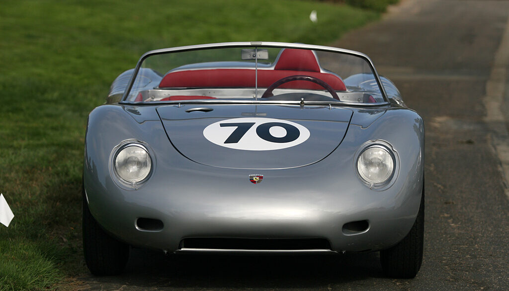 The 550A was based on Porsche’s first purpose-built racing car, the mid-engined RS 550 Spyder. Appearing at the end of 1956, the 550A differed from its predecessor by use of a full tube spaceframe with several rear supportive cross-members, rather than the heavier welded-up sheet steel internal structure of the 550. The rear swing axles of the 550 were replaced by a new low-pivot arrangement that made handling much more predictable.