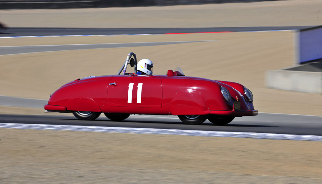 Successful VW Dealer and racer Walter Glöckler built several specials for the German Car Championship including this roadster. It was built with assistance from Porsche in Zuffenhausen and raced without its optional hardtop in the 1952 champion before being shipped overseas for SCCA racing. Weidenhausen created the body from aluminum with a nose that bore close resemblance to the 356 Porsche but had semi-skirted rear wheels and cutaway rear corners similar to Glockler-Porsche 1 and 2.