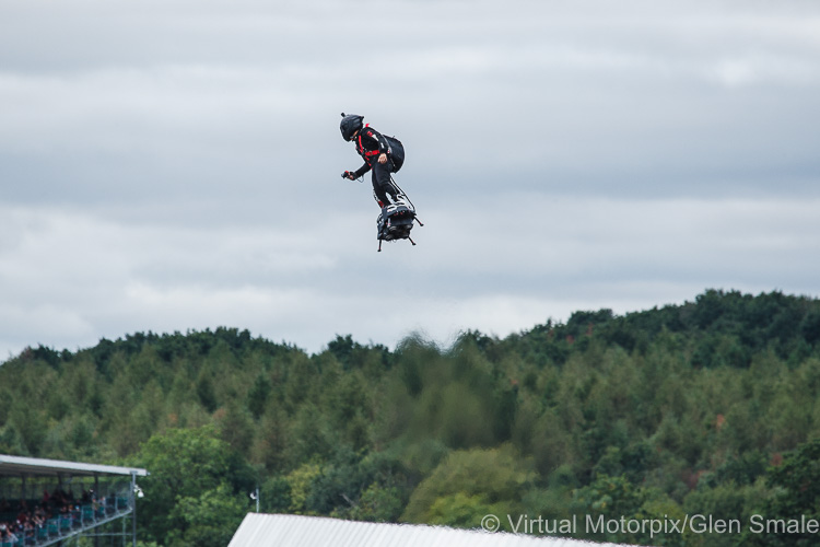 Race day broke with a chilly wind blowing over a Silverstone that was under a blanket of cloud. As the pre-race festivities unfolded, we were treated to an aerial display by someone – was it a bird, was it an aeroplane, no…and it wasn’t even Superman – it was flyer on a flyboard. An amazing contraption that makes an awful lot of noise, but the antics he got up to on this flying skateboard were quite remarkable. I’m not entirely sure whether he would be called a pilot or an aerial skateboarder, but one thing is for certain, he was a brave dude. Maybe a flyboard is what we need to get around the circuit with your camera gear – maybe one day…